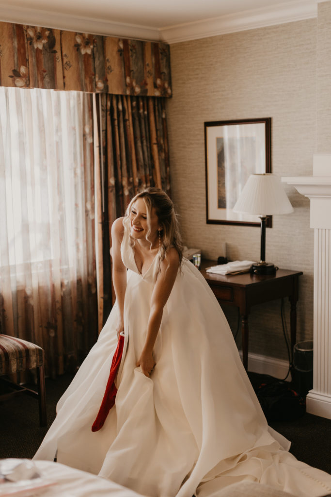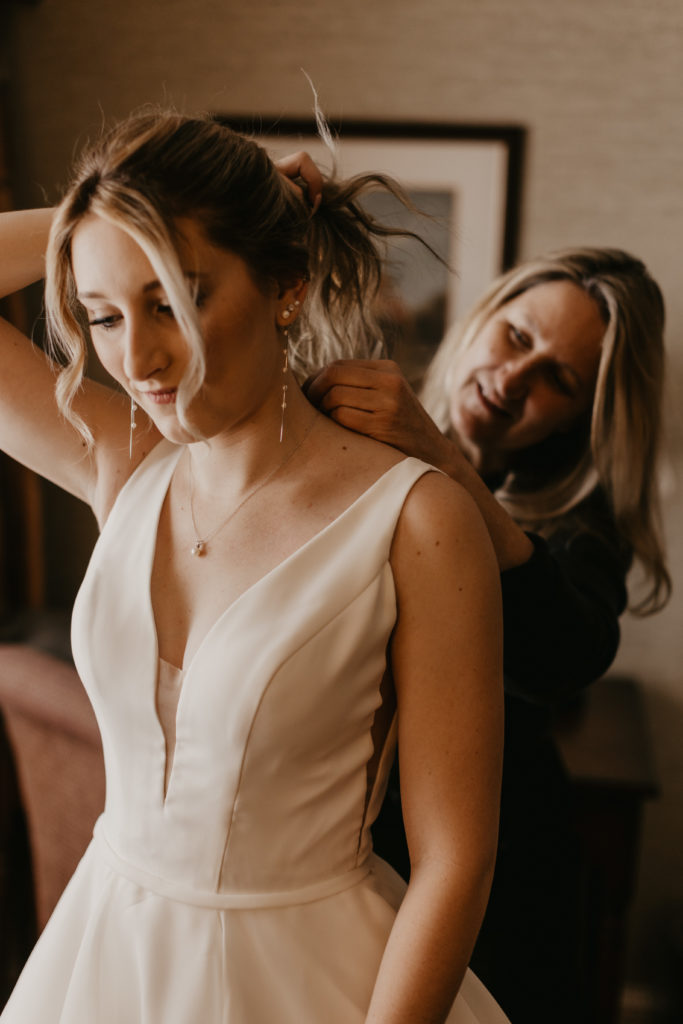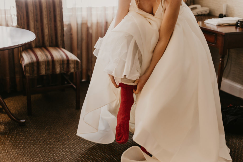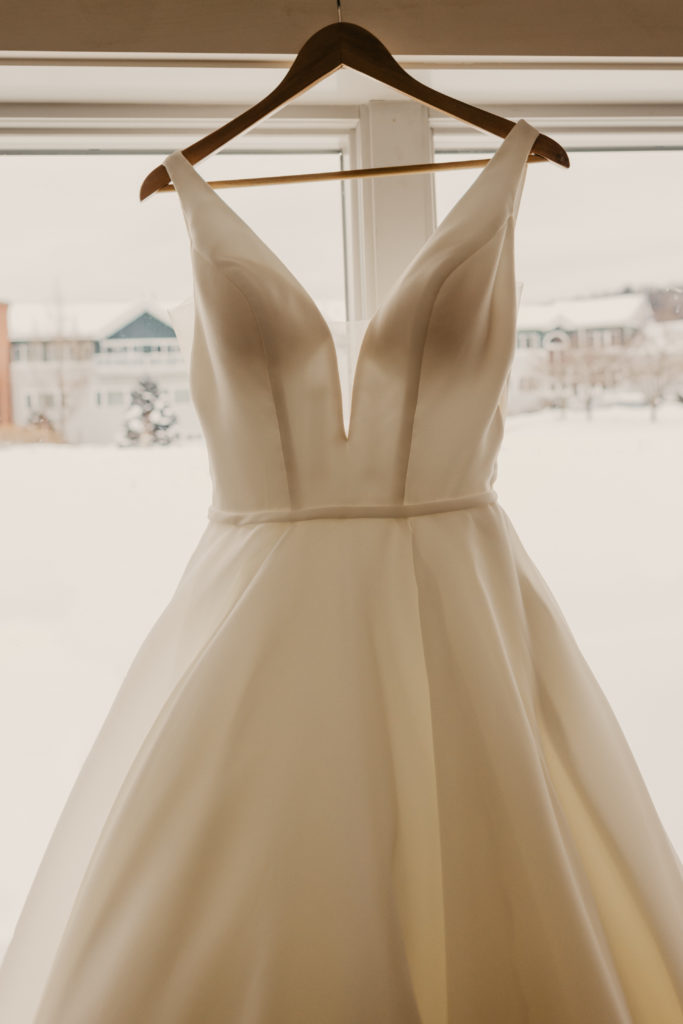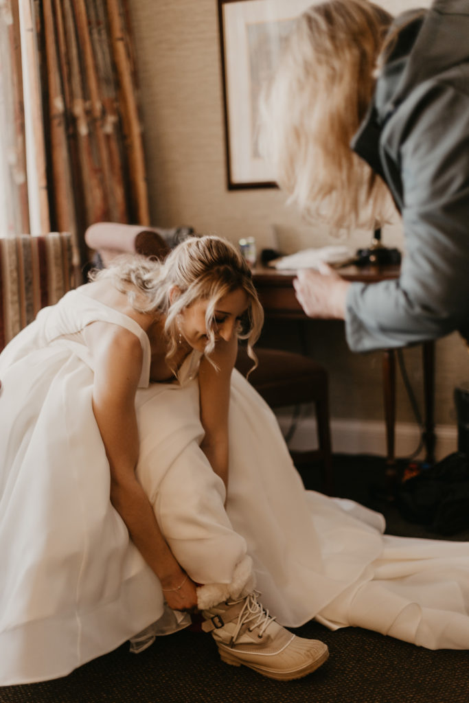 Katelyn and her mom, dressed in knee-high winter socks and boots (it is, after all, Vermont), left the Stoweflake Mountain Resort and Spa in the morning – Kate in her stunning A-Line gown and mom in Vermont’s very own winter uniform of snow-pants and jacket.